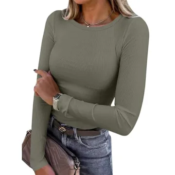 ANRABESS Women Long Sleeve Rib Knit Slim Fit Crewneck Tee Tops 2024