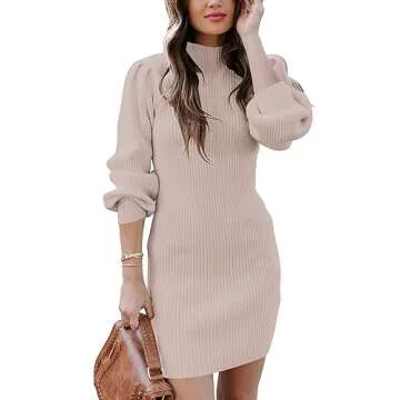 Show more Step into style this Fall with the ANRABESS Women Long Sleeve Turtle Mock Neck Rib Knit Stretch Slim Fitted Bodycon Sweater Mini Short Dress. Crafted for comfort and elegance, this stunning piece is designed with a perfect blend of soft, stretchy fabric that hugs your curves while providing a warm layer against the chill. Its long sleeves and turtleneck design not only keep you warm on brisk autumn days but also offer a chic, streamlined silhouette. Available in sizes S through XL, you can easily choose your usual size for a flattering fit.