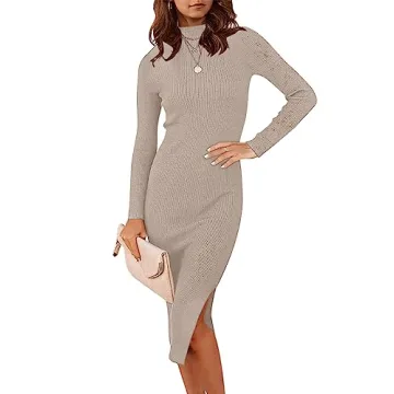 Show moreIntroducing the ANRABESS Women Long Sleeve Turtleneck Slim Fit Ribbed Knit Slit Cocktail Party Sweater Midi Dress, the quintessential addition to your fall wardrobe that exudes elegance and comfort. This trendy dress is expertly designed for the modern woman who values style without compromising on wearability. Crafted from a premium blend of 50% viscose, 30% nylon, and 20% PBT, it’s lightweight yet durable, making it a versatile piece ideal for every occasion, whether casual brunches or sophisticated soirées.