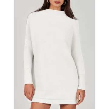 ANRABESS Women Oversized Casual Loose Turtleneck Long Sleeve Slouchy Baggy Knit Tunic Sweaters Pullover 2024 Fall Outfits White Large
