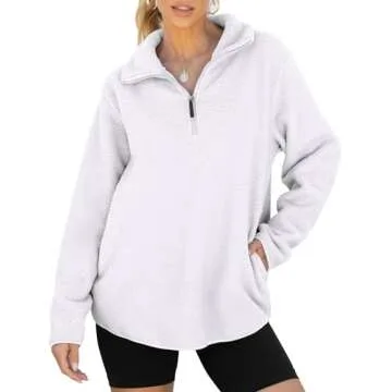 ANRABESS Women Oversized Sherpa Fleece Half Zipper Sweatshirts Fuzzy Collared Quarter Zip Pullover 2024 Fall Winter Clothes