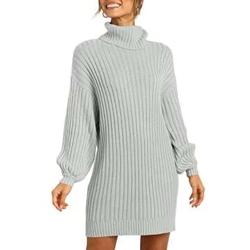 ANRABESS Women Oversized Sweater Dress Turtleneck Batwing Long Sleeve Ribbed Knit Loose 2024 Fall Winter Casual Short Dress A240hui-M Grey