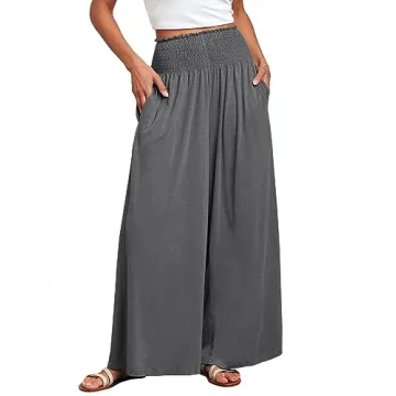 Show more Step into style and comfort with the ANRABESS Women Palazzo Pants, an essential piece for any wardrobe, especially tailored for those who appreciate a bohemian vibe. These summer boho baggy wide-leg trousers are not just another pair of pants; they are a celebration of comfort that effortlessly transitions from lounging at home to an elegant evening out. With a high smocked waistband designed to cater to various body types, these pants offer a loose and flowy fit, making them the ideal choice for plus-size fashion enthusiasts. The soft, high-quality fabric feels heavenly against the skin, reminiscent of your favorite sleep shirt but stylish enough to wear anywhere.