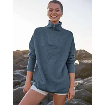 Introducing the **ANRABESS Women Quarter Zip Oversized Casual Loose Rib Knit Cozy Pullover Sweaters Top** – your perfect companion for the 2024 fall season. Crafted with a blend of 50% viscose, 30% nylon, and 20% PBT, this sweater offers an ideal mix of softness, stretch, and durability. Available in stunning colors like Dusty Blue, Rust, and Apricot-Parchment, this pullover is designed for a chic and stylish look whether you're out for a casual stroll...
