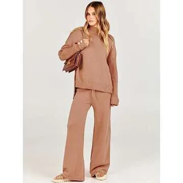 Show more The perfect blend of style and comfort, this two-piece outfit is ideal for those who prioritize both elegance and ease. Crafted by an innovative brand renowned for quality and modern aesthetics, this set features a chic turtleneck long sleeve pullover and matching drawstring wide leg pants. Made from a luxurious blend of 50% Viscose, 30% Nylon, and 20% PBT, the fabric offers a medium stretch and thickness while feeling incredibly soft against the skin. It’s designed for a loose fit, catering to a relaxed yet fashionable silhouette that can transition effortlessly from casual outings to work or parties.