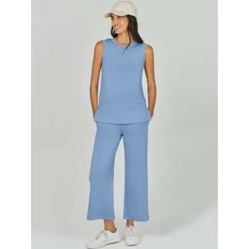 Show moreIntroducing the ANRABESS Women's 2 Piece Sets Summer Outfits, designed to effortlessly combine comfort and style in one chic package. This fashionable ensemble features a sleeveless tank top paired with high-waisted wide-leg pants, perfect for creating a sophisticated look that is versatile enough for various occasions. Available in a stunning blue hue, this particular set in size small (US 4-6) is crafted from a luxuriously soft knitted fabric that wraps you in coziness, ensuring you both look and feel great whether you're lounging at home or stepping out for a casual outing.