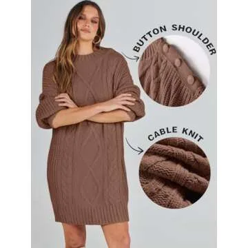 ANRABESS Women's 2024 Fall Oversized Sweater Dress Long Sleeve Crewneck Chunky Cable Knit Casual Short Pullover Dress Tops Brown Medium