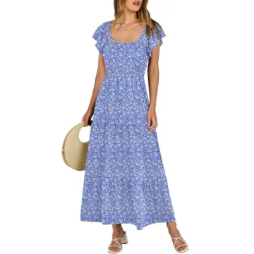 Embrace the warmth of summer with the ANRABESS Women’s Floral Maxi Dress, a stunning piece that combines elegance with comfort. Designed with a flattering A-line silhouette, this dress features a scoop neck, flutter sleeves, and a smocked top for a perfect fit. The tiered design adds a playful flow, making it ideal for any summer adventure. Crafted from a blend of Polyester, Rayon, and Elastane, the dress offers medium stretch and softness, ensuring all-day comfort. Whether you're strolling along the beach...
