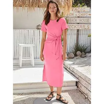 Show moreStep into summer with confidence in the ANRABESS Women's 2025 Summer Maxi T-Shirt Dress, a versatile wardrobe staple that fuses style, comfort, and functionality. This stunning dress features a crew neck and short sleeves designed to keep you cool on warm days while offering the perfect blend of a slim fit and a gently flowing silhouette. With its unique tie waist feature, you can easily adjust the fit to accentuate your figure, whether you're enjoying a casual outing or dressing up for a more formal occasion.