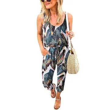ANRABESS Women's Causal Tank Jumpsuits Sleeveless Drawstring Elastic Waist Loose Summer Romper Outfits with Pockets Leaf Print Small
