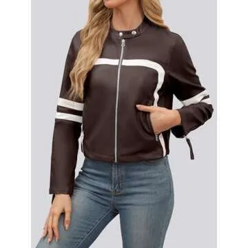 Features - Womens Faux Leather Jackets, Solid color design with striped stitching, classic never goes out of style, zip up design, two side pockets for storage. The coats suitable for casual, street, travel, cycling or outdoor activities, hanging out with friends.