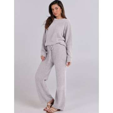 Feature: Fuzzy fleece fabric, long sleeve, crewneck, high waist with adjustable drawstring, elastic waistband, pullover sweater top, and wide-leg pants. This lounge set is suitable for daily, home, pajama party, travel.