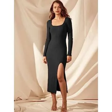 Show more If you're searching for the perfect addition to your wardrobe, look no further than this stunning dress! Crafted from high-quality, thick ribbed knit material, it is designed to offer both style and comfort. This dress is not just a piece of clothing; it's a statement of elegance and sophistication that can elevate any occasion. With its incredible stretchiness, it hugs your body in all the right places, creating a flattering silhouette that enhances your natural figure while effortlessly hiding any imperfections.