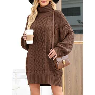 Show moreStep into the cozy season with the ANRABESS Women's Loose Turtleneck Oversized Sweater Dress, a perfect blend of comfort and style that makes a bold statement for the fall of 2023. Crafted with a soft, chunky cable knit design, this dress envelops you in warmth while showcasing an effortlessly chic silhouette. Featuring a slouchy, oversized turtleneck that adds a trendy touch, it’s designed for those who appreciate fashion without sacrificing comfort. Whether you're lounging at home or heading out for a casual day out, this versatile piece can be dressed up or down, making it a must-have in your wardrobe!
