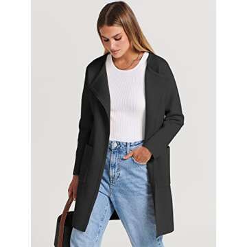 Show moreIntroducing the ANRABESS Women's Open Front Knit Lightweight Cardigan, your new stylish companion for the cooler months! This elegant long coatigan combines comfort and chic fashion seamlessly. Made from a soft, flexible knit fabric, it provides warmth without sacrificing style. With an open front design, a flattering lapel neckline, and practical pockets, this cardigan is not just an outerwear piece but a versatile layering essential that you can wear anywhere. The exquisite detail in its craftsmanship is evident, making it an excellent choice for both casual and more polished looks.