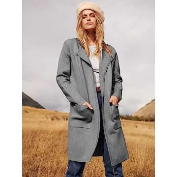Show more Step into a world of comfort and style with the ANRABESS Women's Open Front Knit Lightweight Cardigan. This casual long coatigan sweater is designed to elevate your wardrobe for the 2025 fall season, perfectly balancing funcionality and chic design. Made with a warm and soft knit fabric, it provides flexibility for all-day wear. The open-front style embraces a sophisticated lapel neckline, while conveniently placed pockets add a touch of practicality. Available in a classic deep grey, this cardigan complements any outfit, making it an essential piece for your closet.