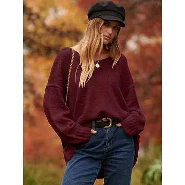 ANRABESS Women's Oversized Casual Loose Slouchy Pullover Sweater - Wine Red