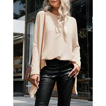 Show moreIntroducing the ANRABESS Women's Oversized Crewneck Long Batwing Sleeve Waffle Knit Sweater, the perfect blend of comfort and style for your fall wardrobe! This lightweight casual sweater, available in a trendy apricot hue, features a loose fit that embraces your natural shape while providing maximum comfort. Crafted from a premium blend of 95% Polyester and 5% Spandex, the fabric offers just the right amount of stretch and softness, ensuring you feel great all day long. Whether you’re heading out for coffee with friends or enjoying a cozy night in, this versatile piece can effortlessly elevate your look.