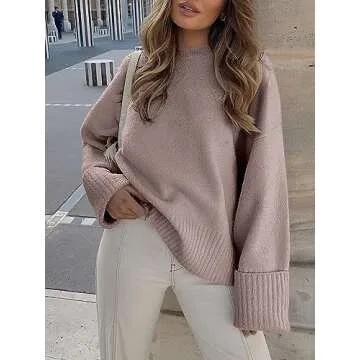 ANRABESS Women's Oversized Crewneck Long Sleeve Fuzzy Knit Casual Chunky Warm 2024 Fall Pullover Sweaters Top Trendy Outfits Gray Purple X-Large