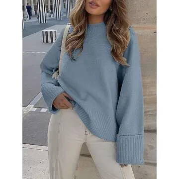 ANRABESS Women's Oversized Crewneck Long Sleeve Fuzzy Knit Casual Chunky Warm 2025 Fall Pullover Sweaters Top Trendy Outfits Grey Blue Medium