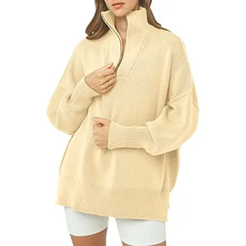 Trendy ANRABESS Women's Oversized Quarter Zip Sweater for Cozy Fall Looks