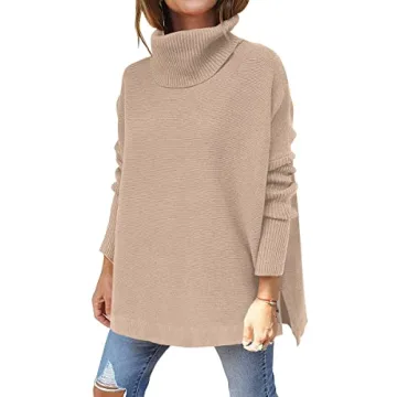 Show moreIntroducing the ANRABESS Women's Oversized Turtleneck Batwing Sleeve Split Casual Loose Knit Tunic Pullover Sweater, your new go-to fashion piece for the season! This sweater is designed not only for style but also for unparalleled comfort, ensuring that you remain cozy whether you’re relaxing at home or heading out for a casual outing. Crafted with a chic turtle cowl neck, it adds a trendy flair that effortlessly elevates your wardrobe. The long batwing sleeves provide beautiful draping, while the high-low asymmetric hem creates a flattering silhouette that suits all body types. Available in an array of stunning colors, including a captivating pink and a vibrant turquoise, it’s the perfect blend of fashion and function that deserves space in your closet.