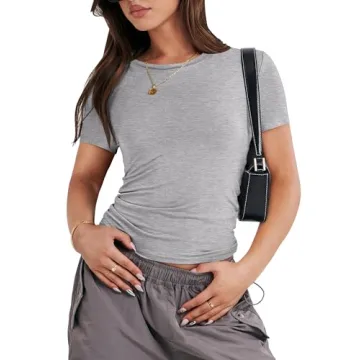 Show moreIntroducing the ANRABESS Women’s Short Sleeve Summer T Shirts, the ultimate staple for your warm-weather wardrobe! Designed with a focus on both style and comfort, this slim-fit basic tee is perfect for any occasion, from casual outings to chic gatherings. With a classic crew neck and short sleeves, each top offers a cropped length that flatters your figure, ensuring you look effortlessly stylish while staying comfortable. Made from high-quality materials - 95% Rayon and 5% Elastane - the fabric is soft to the touch, breathable, and offers just the right amount of stretch for a flattering fit.