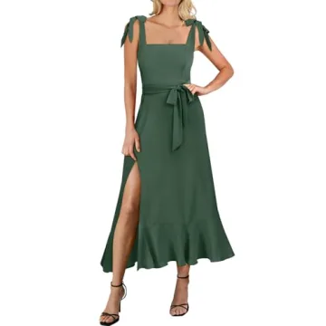 ANRABESS Women's Square Neck Ruffle Split Midi Elegant Formal Wedding Guest Cocktail Bridesmaid Graduation Party Dresses 2024 Green Medium