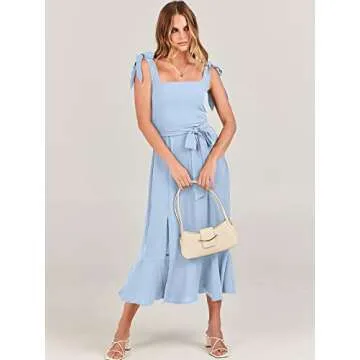 ANRABESS Women's Square Neck Ruffle Split Midi Elegant Formal Wedding Guest Cocktail Bridesmaid Graduation Party Dresses 2024 Sky Small