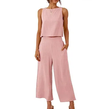 Show moreIntroducing the ANRABESS Women's Summer 2 Piece Outfits, a perfect blend of style and comfort for every modern woman. Designed for versatility, this casual matching set features a sleeveless round neck crop top and wide-leg cropped pants, allowing you to effortlessly transition from daytime activities to evening outings. Crafted from high-quality, lightweight fabrics, this outfit promises a luxurious feel and a flattering fit, making it your go-to choice for any occasion.