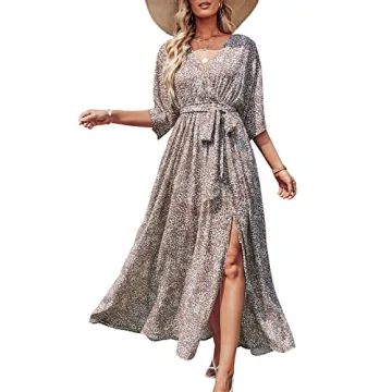 Introducing the ANRABESS Women’s Summer Loose Boho Flowy Wrap V Neck 3/4 Sleeve Floral Print Slit Beach Wedding Guest Long Maxi Dress, a stunning combination of elegance and comfort that embodies the spirit of summer. Tailored with thoughtfulness, this maxi dress is perfect for various occasions—from beach outings to wedding celebrations. Crafted with a wrap V-neck top, oversized 3/4 sleeves, and an elastic waist adorned with a belt, this dress not only enhances your silhouette but also...
