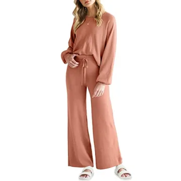 ANRABESS Women’s Two Piece Crop Top & Wide Leg Pants Lounge Sweater Set - Cozy Fall Outfit