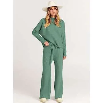 Features - Womens 2 piece outfit with collar round neckline,batwing long sleeve pullover crop top,wide straight leg pants,pockets,ribbed knit fabrication.