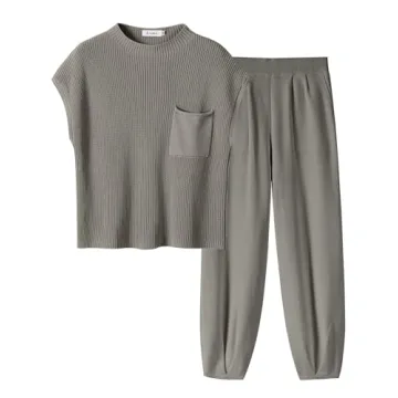 Show moreElevate your loungewear collection with the ANRABESS Women's Two Piece Outfits, a perfect blend of comfort and style. This set includes a cap shoulder knit crop top and high waist taper knit pants, designed for those who value both aesthetics and comfort. Made from 100% Rayon, the fabric offers slight stretch, medium thickness, and softness, ensuring a comfortable fit throughout the day. The loose fit caters to a wide range of body types, with sizes from XS to XXL, making it a versatile choice for any woman.