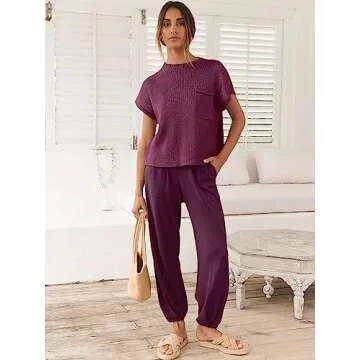 ANRABESS Women's Two Piece Outfits Knit Sweater Vest Crop Top Pants Lounge Matching Tracksuit Sweatsuit Travel Clothes Sets Burgundy Medium