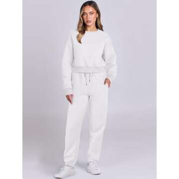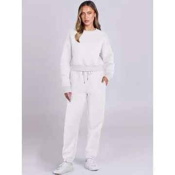 Show more Discover ultimate comfort and style with the ANRABESS Women's Two Piece Outfits, designed for the modern woman who values both functionality and chic aesthetics. This medium-fit tracksuit features a cozy long sleeve crop sweatshirt paired with high-waisted jogger pants, both crafted from a premium blend of 50% rayon and 50% polyester. The rich white color adds a fresh touch, making it easy to mix and match with your favorite accessories. With a softness level rated as high and a medium thickness, it's ideal for year-round wear, providing just the right amount of warmth and breathability. It's not just an outfit; it's a statement of comfort and casual elegance that transitions effortlessly from lounging at home to social outings.