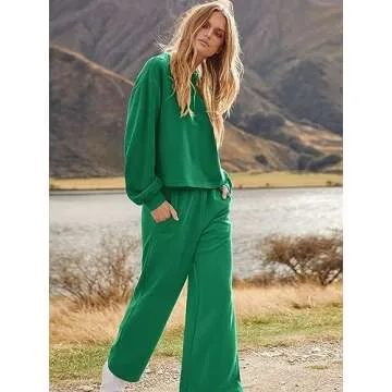 ANRABESS Women’s Two Piece Outfits Long Sleeve Crop Top Wide Leg Sweat Pants Knit Sweatsuit Fall Lounge Matching Clothes Set Green Small