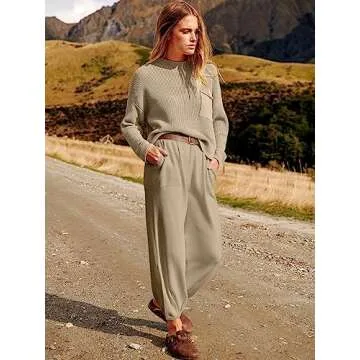 Show more Discover the ultimate blend of style and comfort with this stunning two-piece outfit! Crafted from a soft knit fabrication, this set includes a chic cap shoulder knit crop top and high-waisted taper knit pants, making it a wardrobe staple for any fashionista. The relaxed fit and wide-leg design of the pants ensure that you can enjoy all-day comfort without sacrificing on style. Whether you're dressing up for a brunch date or keeping it casual for errands, this outfit effortlessly transitions between occasions, offering a laidback, throw-on-and-go approach to dressing.