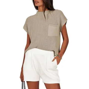 Show moreThe **ANRABESS Women's Two Piece Summer Outfits** are the perfect blend of style, comfort, and affordability. Crafted with a soft 100% Rayon material, this knit sweater and short set features a modern mock neck, rib-knit design, and airy cap short sleeves that provide a flattering silhouette for any body type. Whether you’re heading out on a casual weekend stroll or enjoying a sunny day at a holiday gathering, this matching lounge set is your go-to for effortless style. The elastic high waist shorts add a touch of elegance while ensuring ultimate comfort throughout the day. Available in a versatile khaki white color, this outfit is easy to mix and match, shining in various settings with minimal effort.