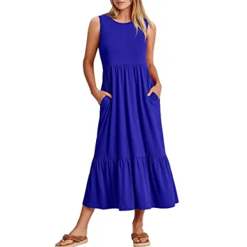 ANRABESS Women Summer Casual Sleeveless Crewneck Sundress Aline Flowy Tiered Maxi Long Beach Dress Vacation Outfits Small Blue