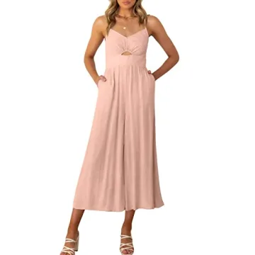 Show moreIntroducing the ANRABESS Women Summer Casual Spaghetti Strap Sleeveless V Neck Cutout Linen Wide Leg One Piece Jumpsuit, your perfect companion for a stylish and comfortable summer! Crafted from breathable and lightweight fabric, this jumpsuit is designed to keep you cool in warm weather while offering a flattering silhouette. With its stunning cutout detail, v-neckline, and wide-leg design, it's both chic and elegant, making it suitable for various occasions. The adjustable shoulder straps provide a customized fit, while the shirred back waist ensures it hugs your body in all the right places. It’s a must-have addition to your wardrobe for those sunny days!