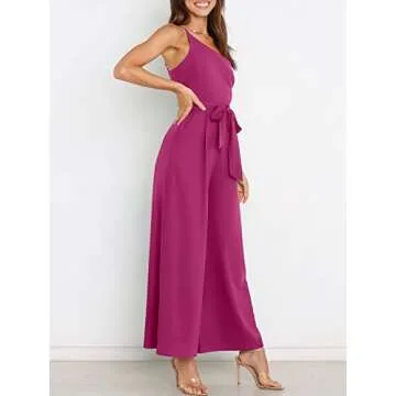 Show more Step out in style with the ANRABESS Women Summer Dressy Jumpsuits—your go-to outfit designed for unparalleled comfort and chic elegance. This stunning jumpsuit, crafted from a soft and stretchy blend of 95% polyester and 5% spandex, ensures a flattering fit while providing the right amount of breathability. The fashionable one-shoulder design enhances your silhouette, while the exquisite zipper back and backless style add a touch of allure to this effortlessly versatile piece. The high-waisted fit, complete with a tie knot waist, allows for adjustable comfort, perfectly suiting various body shapes and sizes. Best of all, it's equipped with hidden pockets for a touch of practicality, letting you carry essentials with ease.