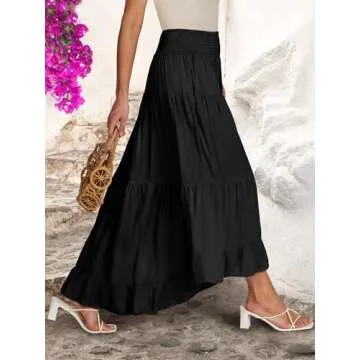 ANRABESS Women Summer Maxi Skirt Elastic High Waist Flowy Boho Casual Tiered Aline Long Beach Skirts 2025 Trendy Outfits Black Medium