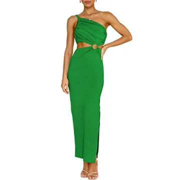 Show moreIntroducing the ANRABESS Women Summer One Shoulder Sleeveless Maxi Dress - your go-to outfit for any special occasion in 2024! This stunning dress features a modern one-shoulder design accentuated with chic circular cutouts at the waist, providing a flattering silhouette that highlights your curves beautifully. Crafted from a luxurious yet durable fabric, this bodycon dress offers just the right amount of stretch to ensure a comfortable fit while maintaining a sleek profile. The high slit adds an alluring touch, making it ideal for a romantic evening or a fancy dinner party. Available in several stylish colors, this dress is designed to turn heads and earn endless compliments!