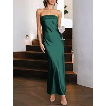 ANRABESS Women Summer Wedding Guest Maxi Dress Strapless Satin Tube Bodycon Backless Cocktail Formal Dresses 2025 Spring Deep Green