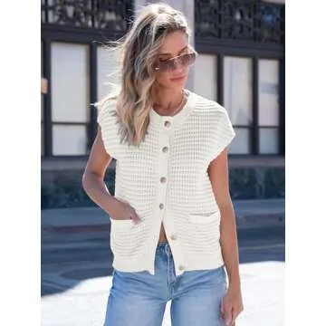 Show moreIntroducing the ANRABESS Women Sweater Vests Sleeveless Cardigan, the quintessential piece for your spring and summer wardrobe. This chic and trendy cardigan is crafted from a blend of 55% Acrylic and 45% Rayon, ensuring a durable yet soft fabric that embraces you in comfort. With a regular fit and a variety of sizes (S=US(4-6), M=US(8-10), L=US(12-14), XL=US(16-18)), you can find the perfect fit for your silhouette. The medium stretch and thickness make it an ideal layering piece, whether you’re heading to the office or enjoying a casual day out. Designed with a stylish crew neck and sleeveless cut, this knitted vest offers versatility and elegance, making it an essential addition to any outfit.