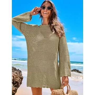 ANRABESS Women Swimsuit Crochet Swim Cover Up 2025 Summer Bathing Suit Swimwear Mesh Knit Beach Dress Vacation Outfits Khaki Small
