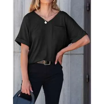Introducing the ANRABESS Women T Shirts Oversized Short Sleeve V Neck, the ultimate go-to in summer casual fashion! This beautifully designed top combines comfort with style, bringing you an oversized fit that is perfect for those warm sunny days without compromising on elegance. Made from a premium blend of 27% rayon, 68% polyester, and 5% elastane, this shirt offers a delightful softness that you’ll love to wear. Its versatile design features a v neck and short sleeves, making it ideal for all-day wear,...
