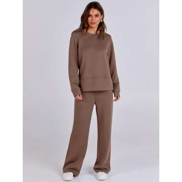 Show moreIntroducing the ANRABESS Women's 2 Piece Lounge Sets Sweatsuit, a perfect blend of comfort, style, and versatility for your 2024 fall wardrobe. Designed with the modern woman in mind, this tracksuit outfit features a relaxed fit that allows you to transition effortlessly from daily errands to leisurely dinner outings. Made from a cozy fabric consisting of 50% Rayon, 45% Polyester, and 5% Elastane, you can expect a smooth feel against your skin, making it an ideal choice for all-day wear. With its medium stretch and thickness, you'll enjoy both comfort and functionality, ensuring you always look chic without sacrificing ease.