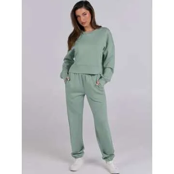 ANRABESS Womens 2 Piece Outfits Lounge Sets Cropped Sweatshirt & Joggers Fashion Sweatsuit Sweat Set 2024 Fall Travel Green Medium